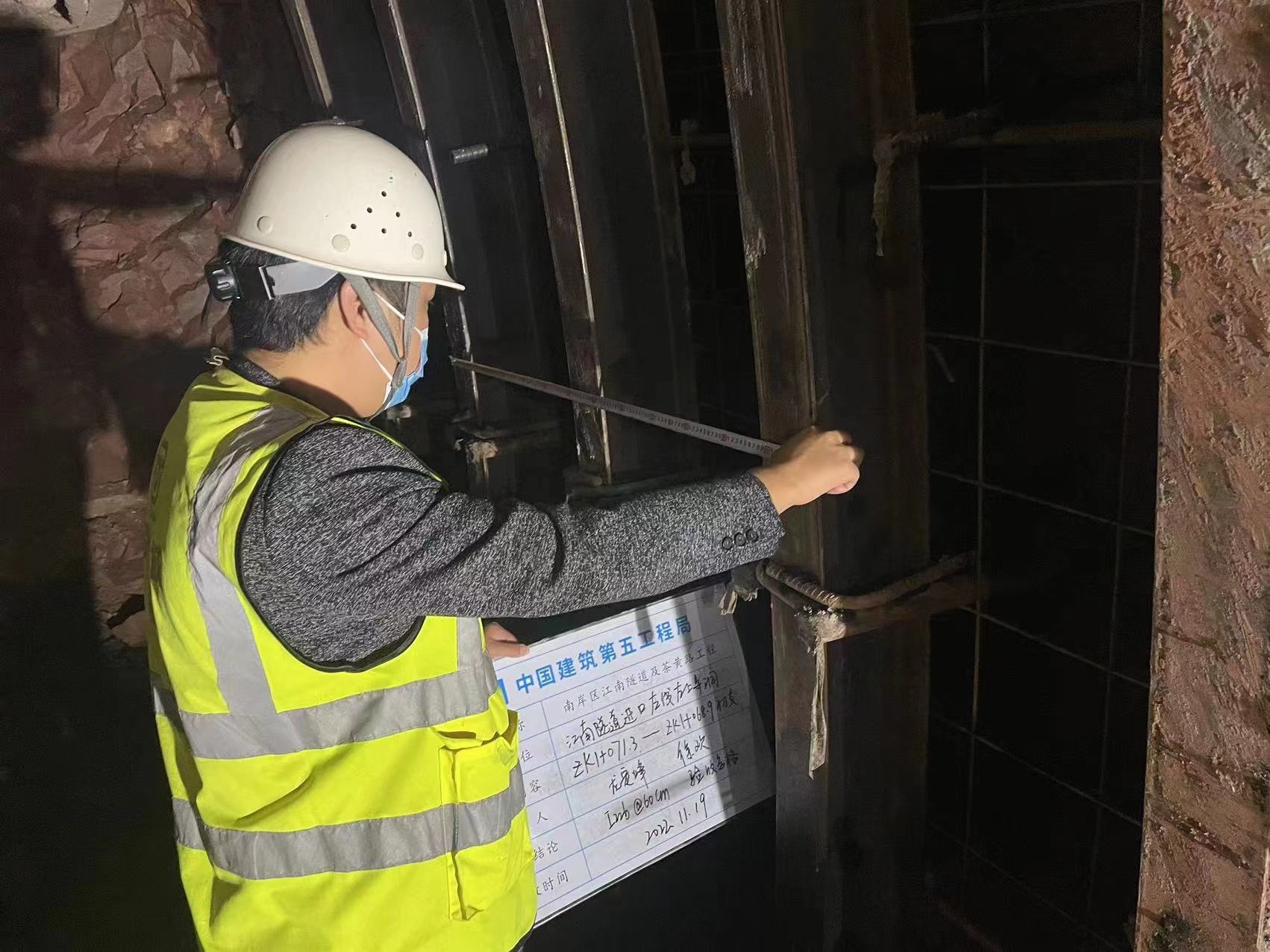 监理人员龙定烽检查拱架间距