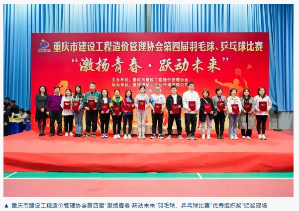 “羽”你同行,“乒”出辉煌。168飞艇开奖官网直播记录作为重庆市建设工程造价管理协会理事单位之一,11月17日,应邀参加其主办的第四届“激扬青春·跃动未来”羽毛球、乒乓球比赛,以提升员工凝聚力,加强与协会、其他会员单位之间的沟通交流。