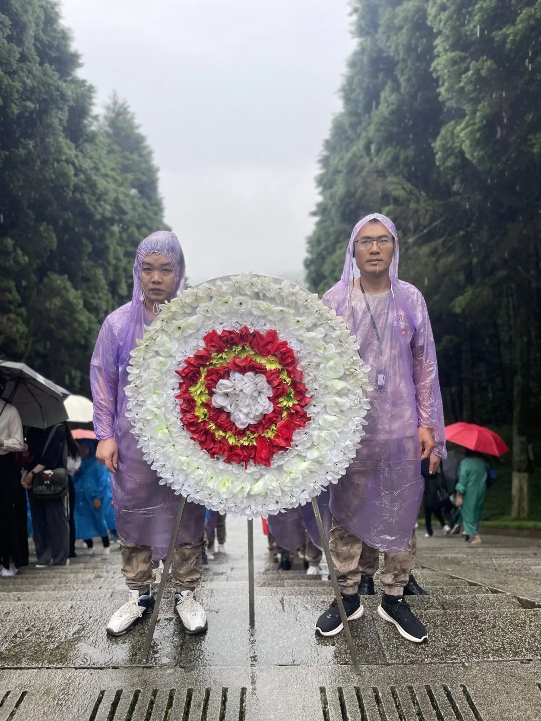 在峰峦叠嶂、地势险峻的黄洋界,大家参观了当年挖掘的战壕、哨口、营房旧址等红色遗迹,听讲解员解说那段军民一心成功击退敌军的红色故事。党员们还重走了挑粮小道,追寻革命先辈的足迹,用脚步丈量信仰的里程,体验红军同志自力更生、艰苦奋斗的精神。当天,井冈山上大雨连绵,这仿佛是革命先烈对我们精神的考验。