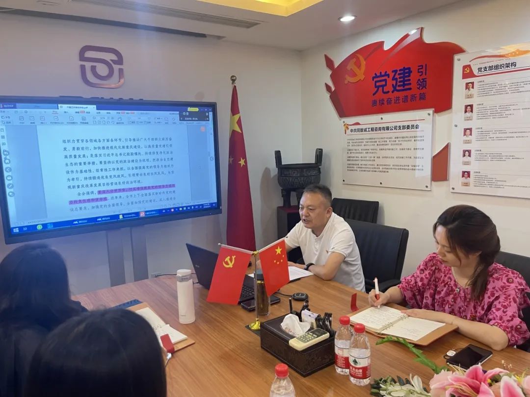 7月17日,同致诚党支部召开全体党员大会,通过线上线下结合的方式传达学习重庆市委六届三次全会精神。党支部书记刘星主持会议并讲话。