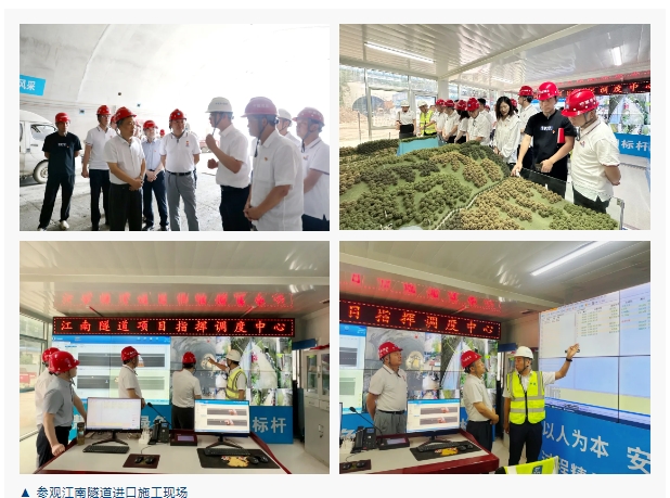 活动伊始,中建五局江南隧道项目党支部书记、项目执行经理张程带领大家参观了江南隧道进口施工现场并详细汇报了项目基本情况、现场进展、项目重难点、施工工艺及项目建设意义。
