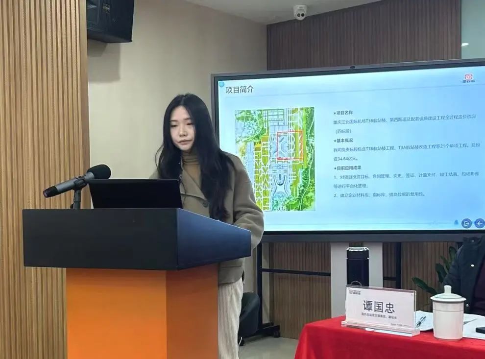 此外,负责公司技术监审工作的陈俊君还详细汇报了我司在重庆江北国际机场T3B航站楼、第四跑道及配套设施建设工程全过程造价咨询(四标段)中,运用数字新咨询生产力平台的使用效果。