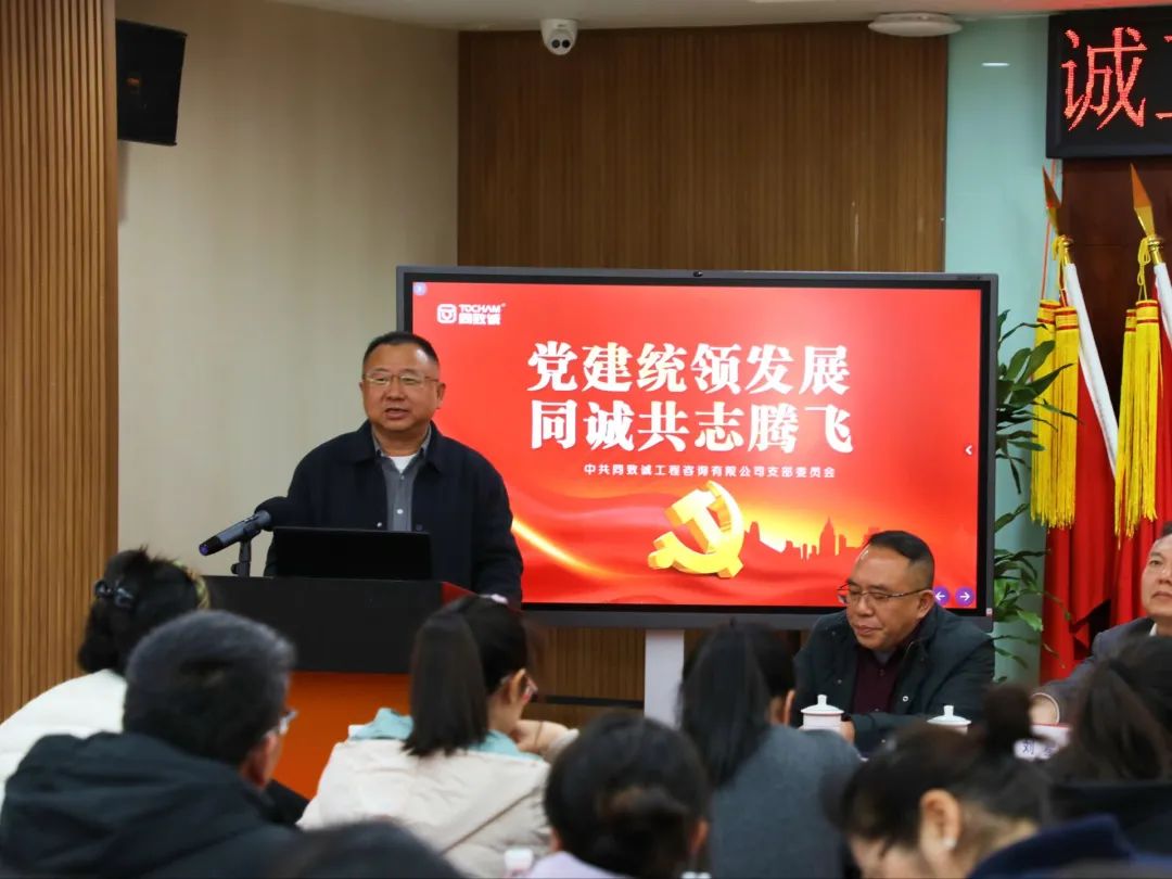 随后,会议在同致诚党支部副书记、副总经理何雨的主持下正式拉开序幕,共话党建引领发展的实践路径。同致诚党支部书记刘星以《党建统领发展 同诚共志腾飞》为主题,从“加强四项建设,坚定主心骨,引领公司发展正确政治方向;构建'三项机制',建好连心桥,扩延党建工作新格局;开展'双强双带',提升向心力,激活党员先锋能效引擎;守住一个底线,打好护心锤,保证公司健康持久发展 ”全面总结了党建工作开展情况,分享了党建引领公司发展的宝贵经验 ,为企业党建与业务融合提供了可借鉴的思路。