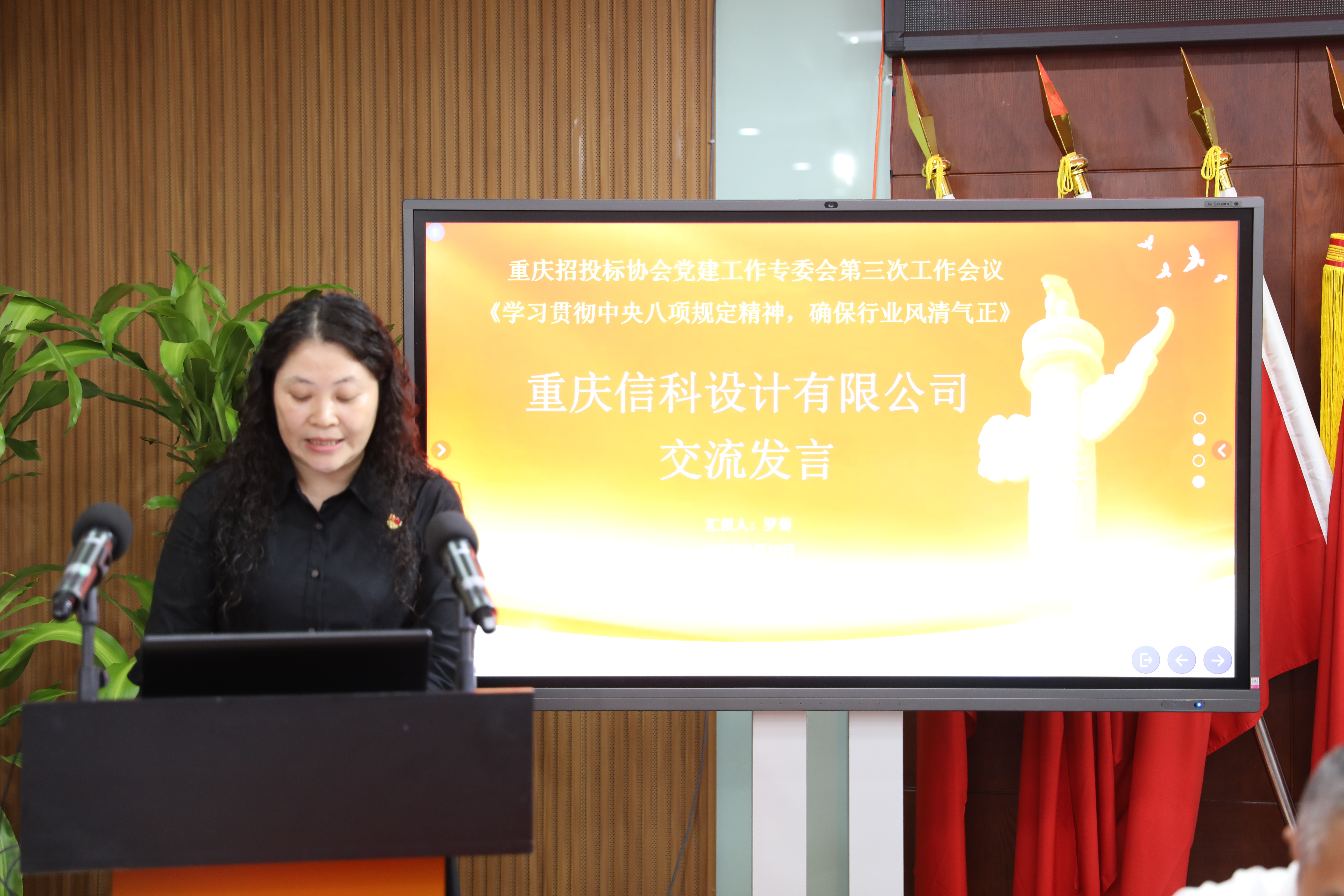 紧接着,重庆信科设计有限公司SM业务市场总监罗菊从“制度建设、流程管理、教育引导、实践创新”四个维度,结合丰富的招投标案例详细汇报了信科设计的相关举措和成效。重庆芳园建设工程咨询有限公司党支部书记、总经理魏寿庆围绕“党建引领、制度建设、监督执纪、示范引领、融合发展”五个角度分享了芳园公司深入实践和系统探索成果。重庆天骄工程项目管理有限公司党支部书记、办公室主任蔡佳林介绍了公司强化政治引领、锚定初心使命、创新服务模式、狠抓廉政建设、凝聚发展合力,以实际行动践行“天骄梦”的具体做法。重庆泓展建设工程咨询有限公司党支部副书记、监理总工赵杰从“深入学习、贯彻落实中央八项规定精神及取得的成绩与效果”介绍了公司在非公企业环境中探索党建与业务协同共进的新路径。