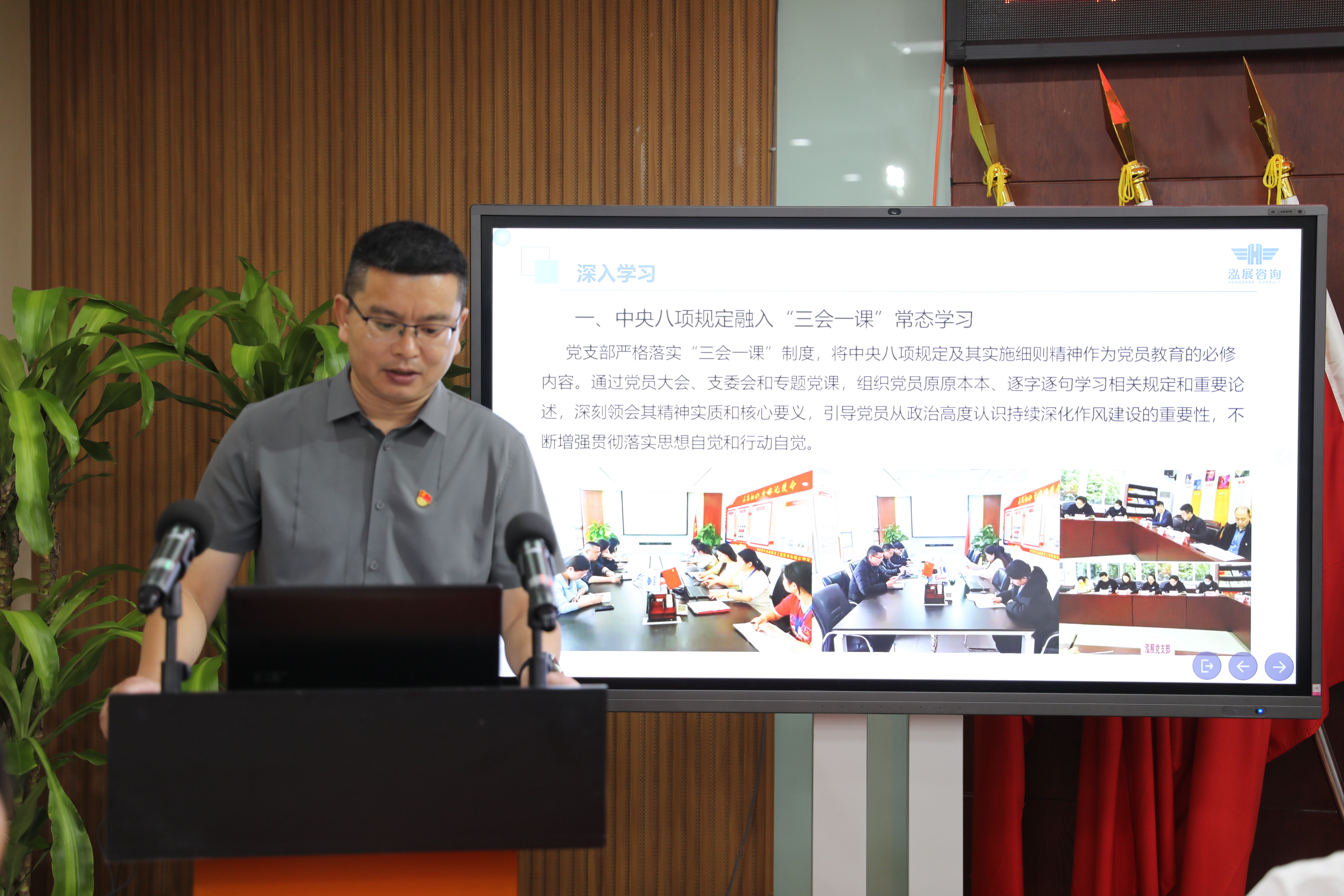 168飞艇开奖官网直播记录党支部书记、副总经理刘星以 “学有质量、查有力度、改有成效——严格按照‘八项规定’精神 加强作风纪律建设” 为主题,通过“坚持学有质量,‘三结合’学深悟透精神实质,筑牢作风纪律建设的思想根基、坚持查有力度,‘三见面’扎实开展巡查督查,找准作风纪律建设的问题短板、坚持改有成效,‘三板斧’认真进行整改整治,实现作风纪律建设的长效治理”三大方面介绍了同致诚党建工作的亮点、创新、沉淀和影响。