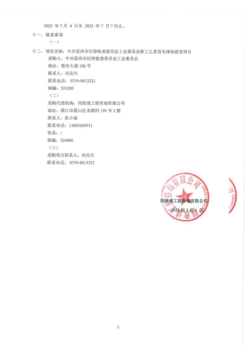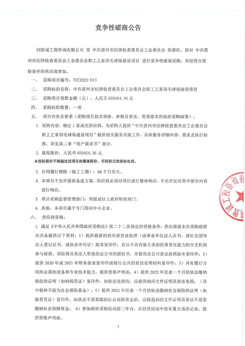 中共雷州市纪律检查委员会工会委员会职工之家羽毛球场建设项目