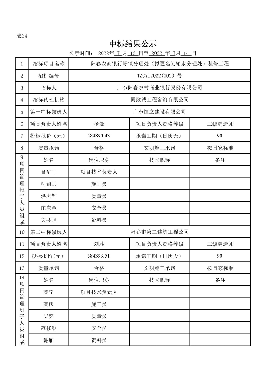 阳春农商银行圩镇分理处(拟更名为轮水分理处)装修工程