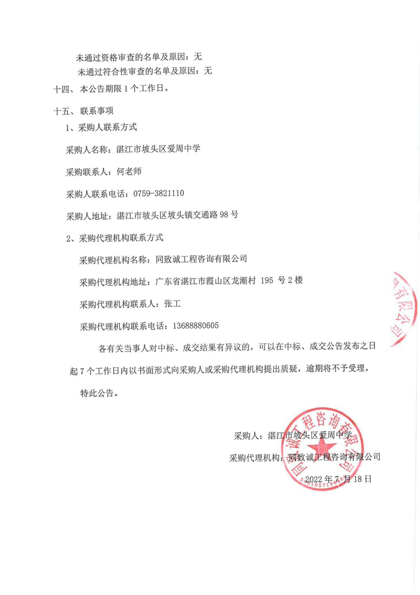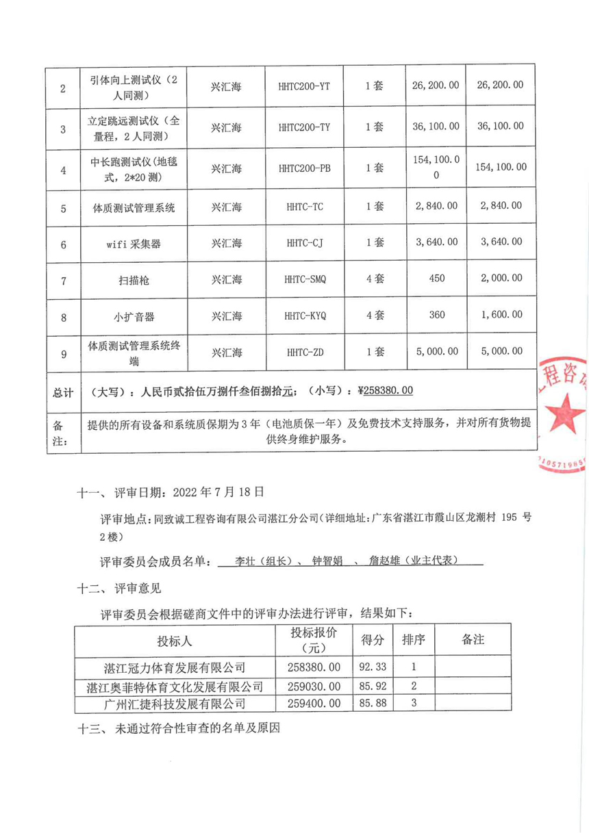 湛江市披头区爱周中学学生体质健康测试设备采购项目