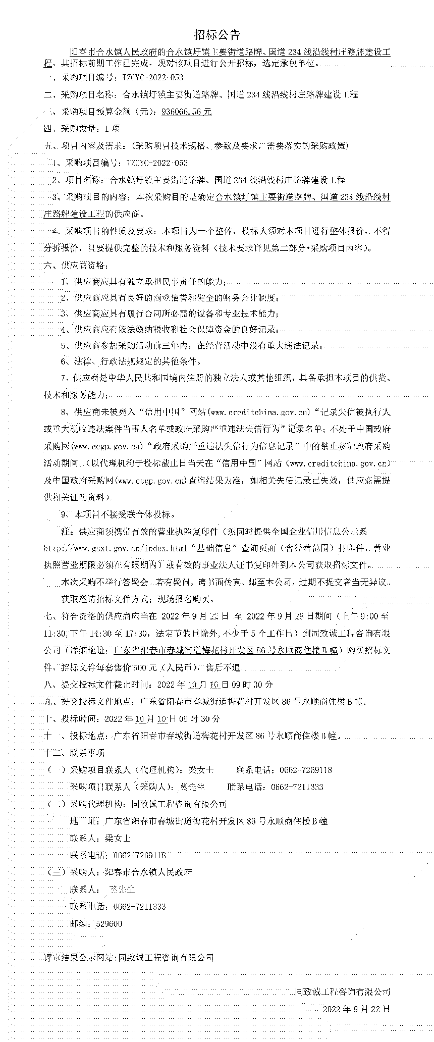 合水镇圩镇主要街道路牌、国道234线沿线村庄路牌建设工程