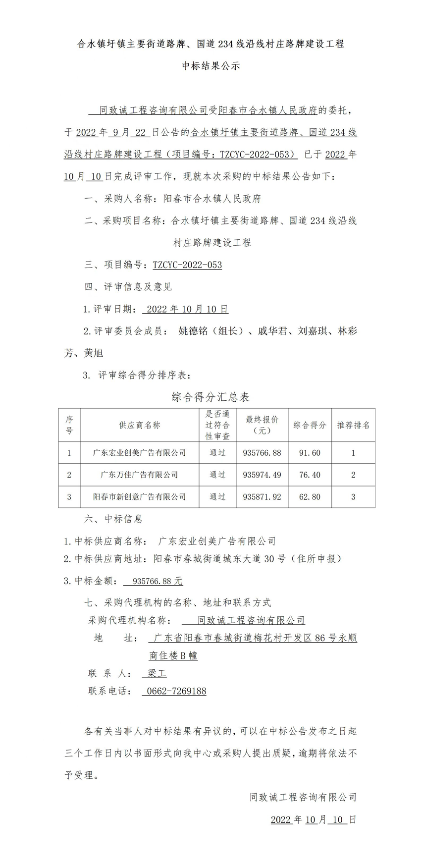 合水镇圩镇主要街道路牌、国道234线沿线村庄路牌建设工程