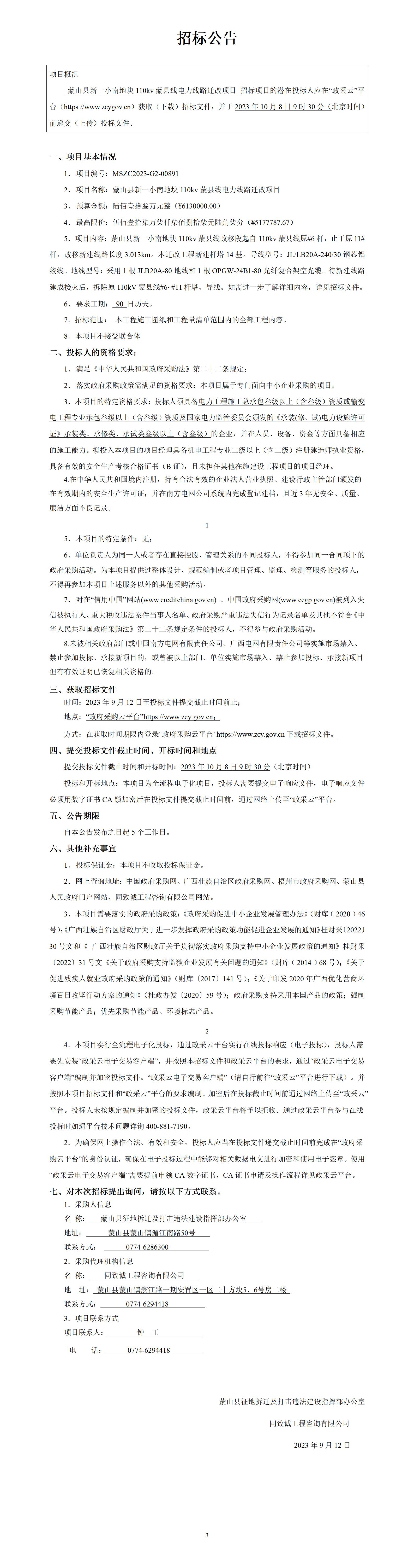 蒙山县新一小南地块110kv蒙县线电力线路迁改项目